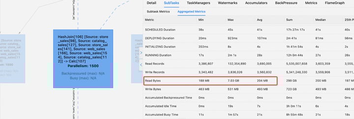 However, in Hybrid Shuffle mode, with its ability to schedule downstream tasks in advance, reducing the parallelism of operators can allow more stages to run simultaneously. This reduces the amount of data written to disk and achieves better performance for the same total resource usage.